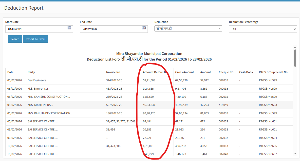 Vendor wise report:- following changes 1) add filter criteria vendor name in editable and also in marathi 2) change the output column in below sequence Sr.No Vendor Name Vendor Account No Budget Head MBMC Bank Account Cheque No Cheque Date Cheque Amt Gross Amt
