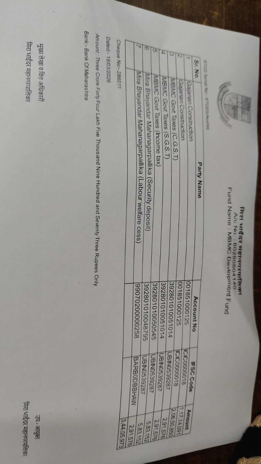 Old Security Challan:- Following cahnges to be done कपातीचे नाांव Rename to कपातीचे नांव रक्कि रुपये Rename to रक्कम रुपये पावती क्रमांक Increase the font size by 2 ठेकेदाराचे नांव Increase the font size by 2 लिपीक स्वाक्षरी (require box) :- Shift this below and place a rectangular box for revenue stamp.